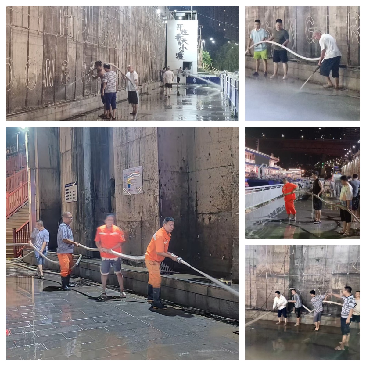 近日,受上游強降雨和庫區(qū)低水位雙重影響,嘉陵江重慶段水位驟漲。客輪公司于9月18日發(fā)布“黃色”預警信息,啟動防洪應急響應。為應對今年最大洪峰,公司領導帶隊徹夜巡查各碼頭港區(qū),提前研判汛情風險,安排管理人員24小時在崗值守,確保安全度汛。9月20日12時,寸灘水位達177.77米,創(chuàng)入汛以來新高,最大洪峰順利過境。洪峰退去后,為盡快恢復港區(qū)經營秩序,9月21日凌晨5時,公司迅速組織行躉船班組及管理人員70余人,在1小時內完成了洪崖洞港區(qū)清淤及照明標識恢復工作。當日,受影響航線順利復航,港區(qū)經營秩序井然。