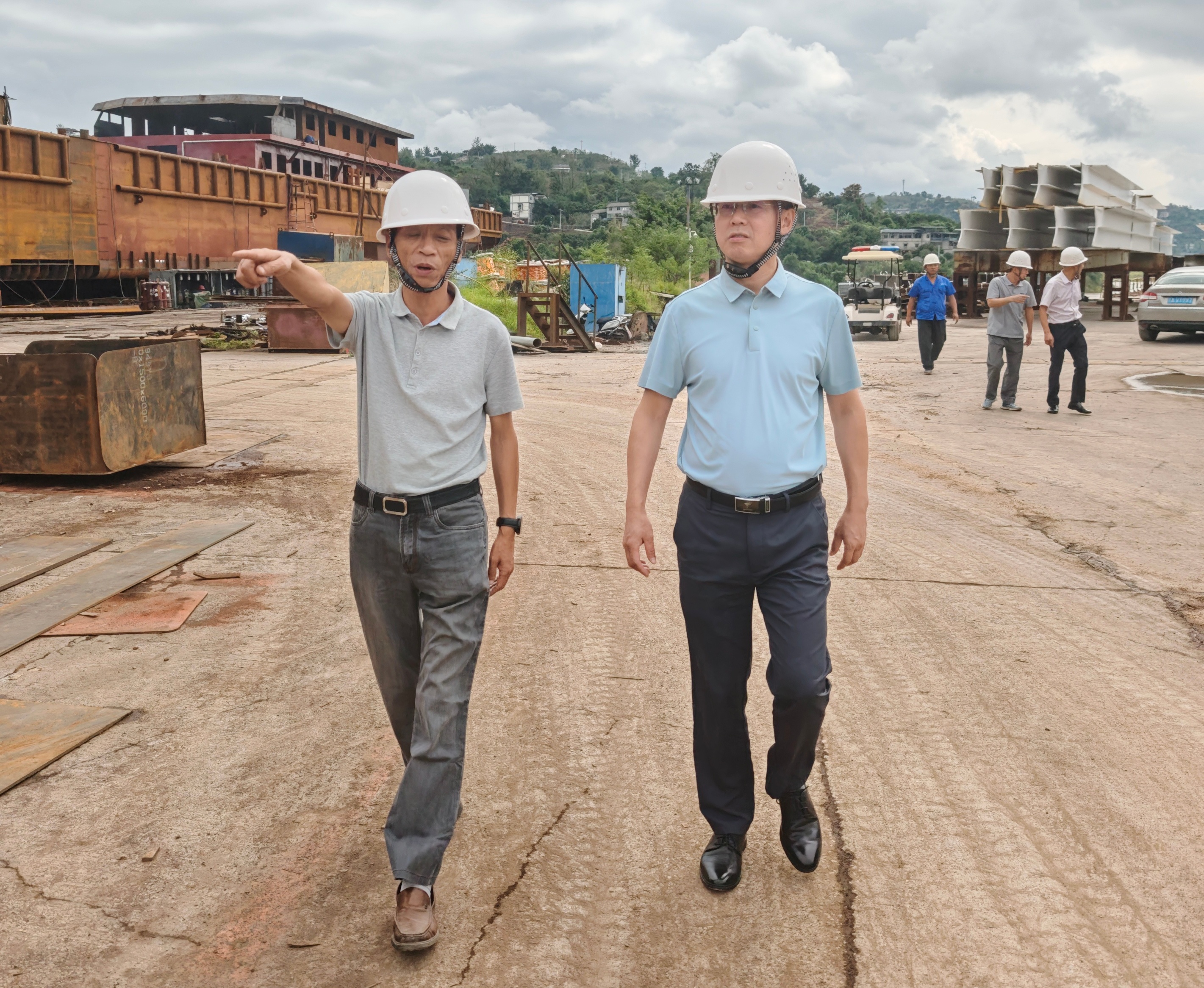 林永宏一行實地查看了船舶建造施工、老舊營運船舶拆解、斜架車改造建設及員工宿舍消防安全等情況,詳細了解了安全措施落實情況。林永宏要求,中江船業(yè)公司要全面落實安全生產(chǎn)主體責任和安全防范措施,為國慶期間安全生產(chǎn)提供有力保障:一是要高度重視節(jié)日期間生產(chǎn)安全,既要抓好生產(chǎn)進度,又要確保安全生產(chǎn),做到“兩手抓、兩不誤”。二是要嚴格執(zhí)行安全操作規(guī)程,確保吊裝、轉運、切割、焊接等各種作業(yè)有條不紊進行,杜絕違章操作。三是要嚴格遵守廠區(qū)交通安全規(guī)定,加強現(xiàn)場監(jiān)督提醒,確保廠區(qū)作業(yè)車輛和往來人員通行安全有序。四是要加強火災隱患排查整改,對作業(yè)現(xiàn)場和員工宿舍等區(qū)域開展全面檢查和隱患整改,切實保障消防安全。